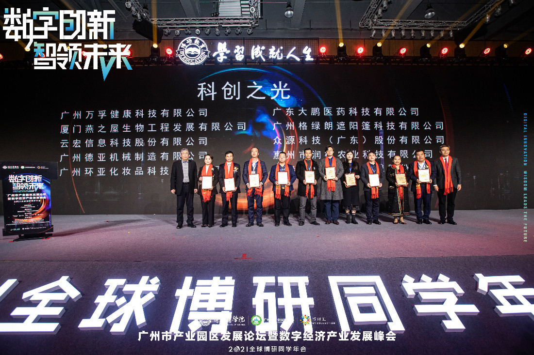 1月10日,“2021博研同學年會”授予10家具有行業代表性且具有科研成果影響力的企業“科創之光”獎牌,廣州德亞機械製造有限公司得此殊榮,並獲院士授牌。
