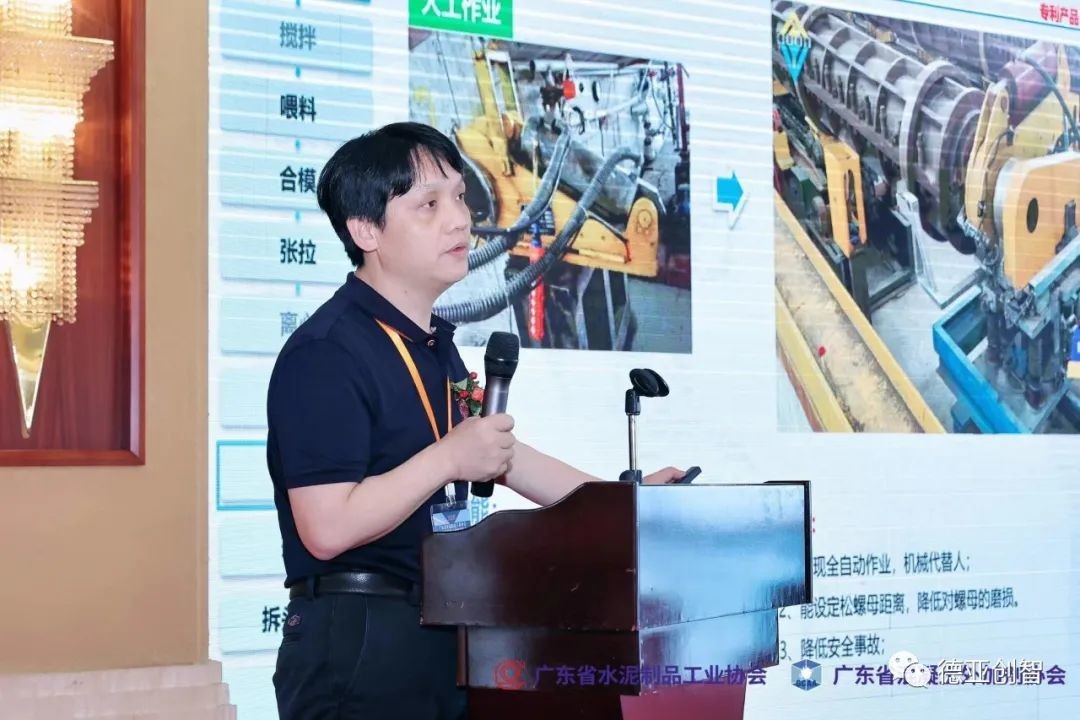我司雷德意總經理在會議上進行了主題為《管樁數字化工廠的應用與分享》的講座,就我司研發的PHC管樁設備在應用過程中的建議與優秀案例進行了詳細的剖析。同時對於影響各企業智能化、數字化改造的困難提出了有效的解決方案。