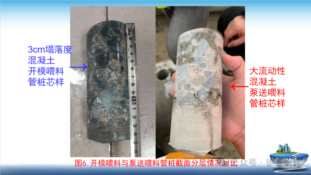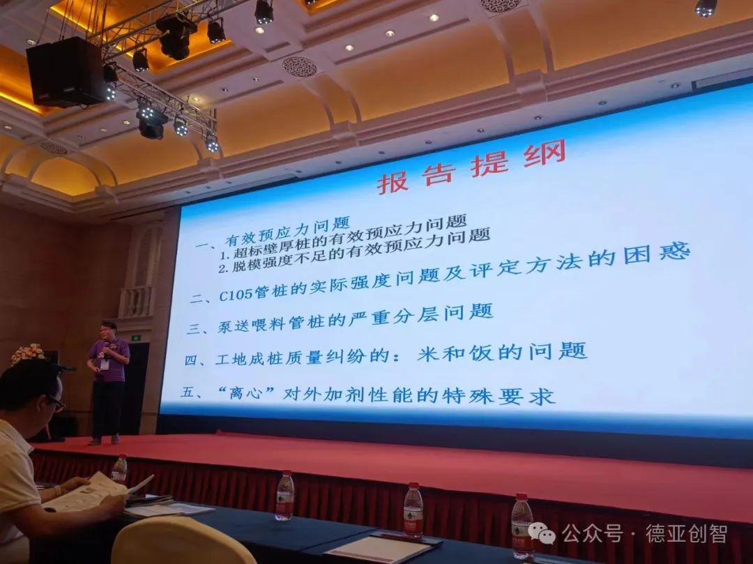 薑正平教授幽默又犀利地指出PHC管樁製造存在的問題,幹貨滿滿。對泵送喂料工藝實物鑽心取樣深入淺出地分析混凝土分層問題,對學術執著、認真負責的態度讓人尊敬。