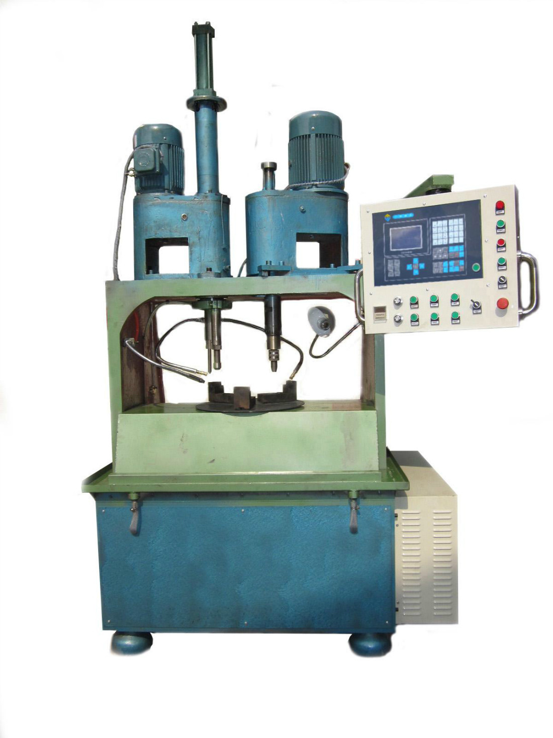 產品特點: 1.攻牙、沉頭雙頭同時工作,提高生產效率; 2.機械部分采用優質材料鑄造,具有足夠的強度; 3.采用油壓式回轉油缸驅動卡盤進行夾料,使用操作簡單、方便; 4.配置TS400回轉工作台,提高分度精度; 5.采用德亞CNC數控係統驅動步進電機進行分度,操作簡便、精度高;6.機器自動分度、鑽孔及攻牙,最大限度降低工人勞動強度,提高生產效率與生產過程中的安全係數。