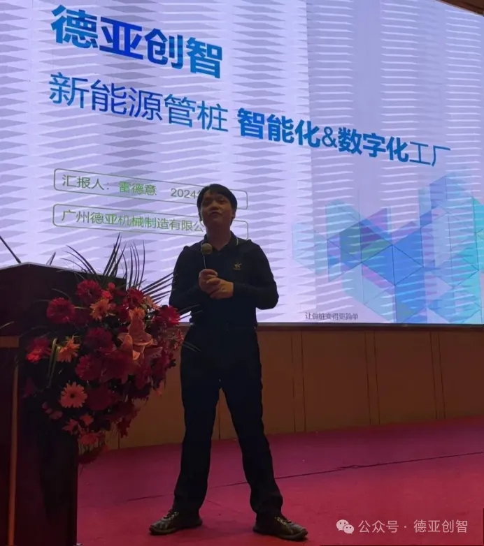 廣州德亞機械製造有限公司董事長雷德意受邀以《新能源管樁智能化與數字化工廠》為主題講座。分析管樁行業瓶頸與樁杆製造痛點,提出解決出路:從傳統模式向智能化&數字化升級,打造樁杆行業新質生產力!